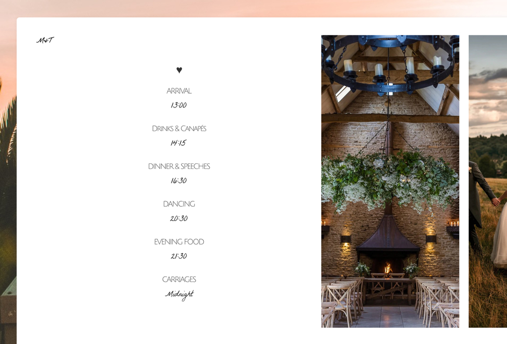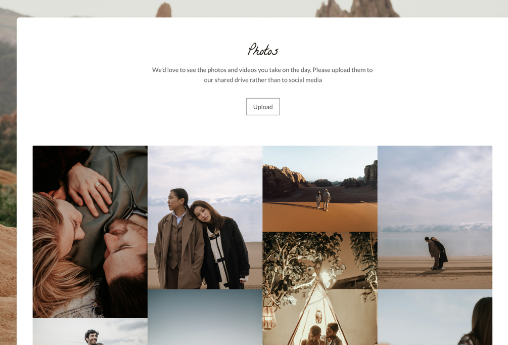 A slick and simple wedding website for couples. This micro-website is fully responsive and can be published on a Framer link as a free save-the-date website. The template gives you pages to include all relevant wedding information: